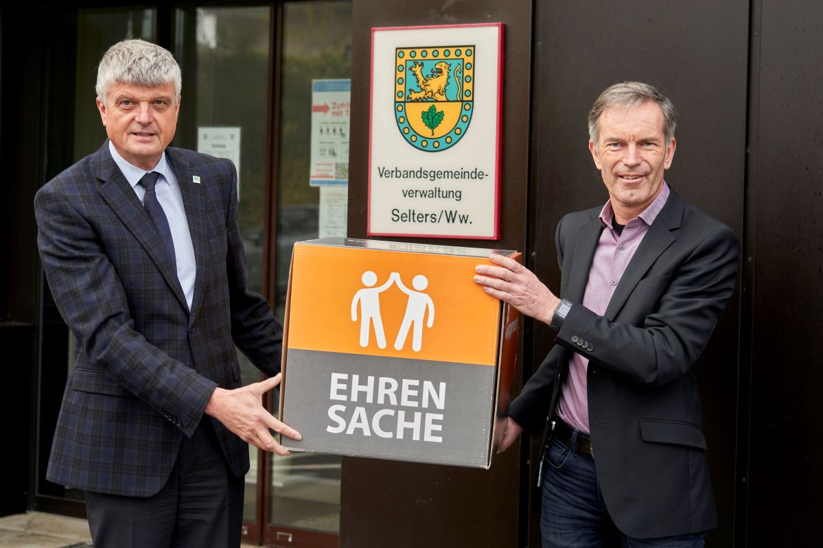 Über insgesamt 2.000 Euro aus der „evm-Ehrensache“ darf sich die Katastrophenhilfe Altenahr freuen. Mit ihrem Spendenprogramm unterstützt die Energieversorgung Mittelrhein (evm) jedes Jahr Vereine und Institutionen aus der Region, wenn es um kulturelle, soziale und gemeinnützige Projekte geht. Den Spendenbetrag übergab Norbert Rausch, Kommunalbetreuer bei der evm, zusammen mit dem Bürgermeister der Verbandsgemeinde Selters, Klaus Müller. „Ich bin noch immer zutiefst bestürzt über die verheerenden Auswirkungen der Flutkatastrophe im Ahrtal“, erklärt Klaus Müller. „In diesen schweren Zeiten müssen wir zusammenhalten und gemeinsam den Betroffenen vor Ort helfen. Deswegen geben wir die Spende der evm an die Katastrophenhilfe Altenahr weiter. Ich freue mich, dass wir auf diesem Weg unsere Unterstützung signalisieren können.“