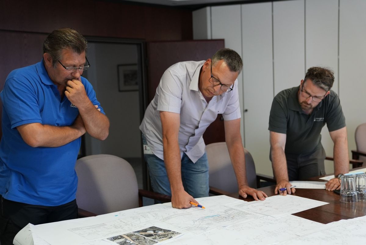 - Parallel laufen mit Hochdruck die Vorbereitungen für den Bau einer provisorischen Erdgasleitung, die in Bad Neuenahr an den Weinbergen entlang der B 266 führen wird. Diese wird gebaut, um auch das Kerngebiet von Bad Neuenahr-Ahrweiler wieder mit Erdgas versorgen zu können. Dort sind die Leitungen in einem Maße zerstört, dass ein Neubau längere Zeit in Anspruch nehmen würde.