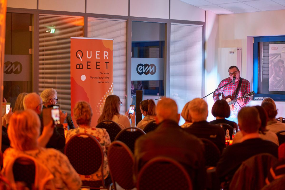 Gänsehautstimmung im Kundenzentrum der Energieversorgung Mittelrhein (evm) in Selters: Josh Hallfeld präsentiert seine Tribute-Show „Shape of Ed“ vor einem begeisterten Publikum. In der Wohnzimmeratmosphäre haben die Welthits des Singer-/Songwriters Ed Sheeran eine besondere Wirkung. Und wie der Star selbst, tritt Josh Hallfeld solo auf und bedient in dabei Gesang, Gitarre und Looper live mit. „Das war wirklich beeindruckend“, so evm-Pressesprecher Marcelo Peerenboom. „Schön, dass wir unser Publikum nun wieder live begrüßen können. Auch die nächsten Termine in unserer Veranstaltungsreihe stehen bereits fest. Schnell sein lohnt sich – denn die Karten sind schnell ausverkauft.“