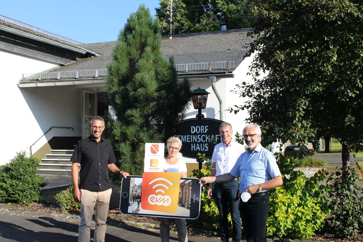 Ganz einfach und schnell im Internet surfen – das können nun die Besucher des Dorfgemeinschaftshauses in Nisterberg. Denn hier wurde jetzt durch die Energieversorgung Mittelrhein (evm) zusammen mit ihrer Tochter KEVAG Telekom ein WLAN-Hotspot eingerichtet. Dass gerade die Ortsgemeinde Nisterberg und insbesondere das Dorfgemeinschaftshaus in diesen Genuss kommt, ist Wolfgang Schneider, Bürgermeister der Verbandsgemeinde Daaden-Herdorf, zu verdanken. Er gewann den WLAN-Punkt beim Gewinnspiel im Rahmen des evm-Zukunftsforums im Jahr 2019 und hat sofort entschieden den Gewinn an die Ortsgemeinde Nisterberg, weil sie als einzige Ortsgemeinde in der Verbandsgemeinde im Konzessionsgebiet der evm liegt, weiterzugeben. „Über die Weitergabe haben wir uns sehr gefreut“, erklärt Kirstin Höfer, Ortsbürgermeisterin der Ortsgemeinde Nisterberg. „Für uns im Gemeinderat war sofort klar, dass wir damit das Dorfgemeinschaftshaus ausstatten.“ Im Dorfgemeinschaftshaus finden regelmäßig Veranstaltungen statt. Aufgrund der Corona-Pandemie wurde das WLAN erst jetzt in Betrieb genommen. Ab sofort kann kostenfrei, schnell und komfortabel im Internet gesurft werden. Ein herzlicher Dank geht an Pascal Weyand von der Verbandsgemeindeverwaltung Daaden-Herdorf und Steffen Höfer aus Nisterberg, die sich um die Umsetzung und die Montage der Technik gekümmert haben.