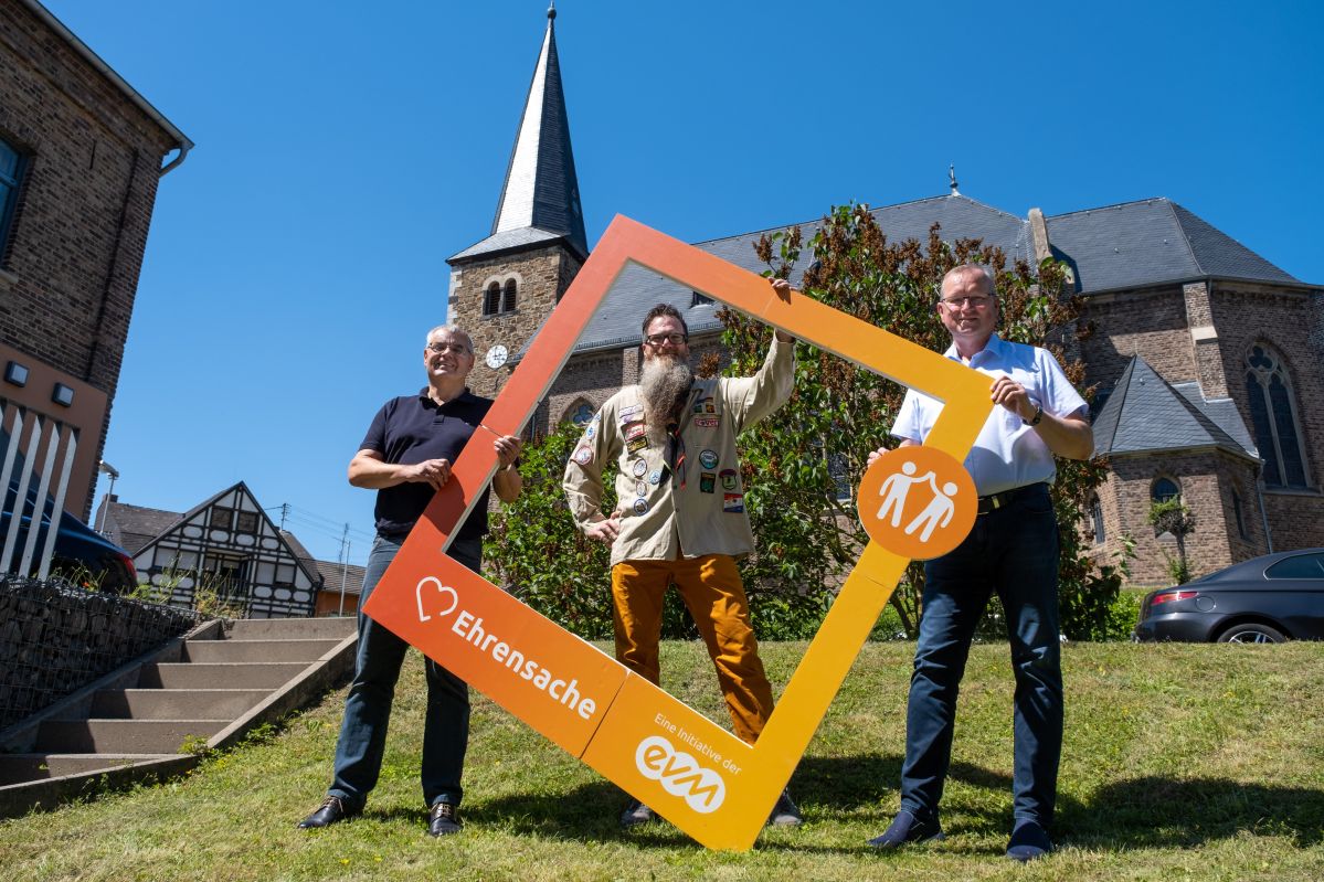 Über insgesamt 2.000 Euro aus der „evm-Ehrensache“ darf sich die deutsche Pfadfinderschaft St. Georg – Stamm Galileo Galilei der Gemeinde Grafschaft freuen. Mit ihrem Spendenprogramm unterstützt die Energieversorgung Mittelrhein (evm) jedes Jahr Vereine und Institutionen aus der Region, wenn es um kulturelle, soziale und gemeinnützige Projekte geht. Theo Schröder, Kommunalbetreuer bei der evm, übergab den Spendenbetrag vor Kurzem gemeinsam mit dem Bürgermeister der Gemeinde Grafschaft, Achim Juchem. „Es ist schön zu sehen, wie sich der Pfadfinderstamm in unserer Gemeinde in den letzten beiden Jahren sozial engagiert hat“, erklärt Achim Juchem. „So boten Sie sich zum Beispiel in der Corona-Krise als Nachbarschaftshelfer vor Ort an, um hilfebedürftige Menschen bei Einkäufen oder Erledigungen zu unterstützen. Auch bei der Ahrflut im Sommer 2021 boten Sie mithilfe ihrer Bollerwagen spontane Hilfe an. Ich bin stolz darauf, die großartige, tatkräftige Unterstützung dieses Vereins mit der Spende der evm unterstützen zu dürfen.“