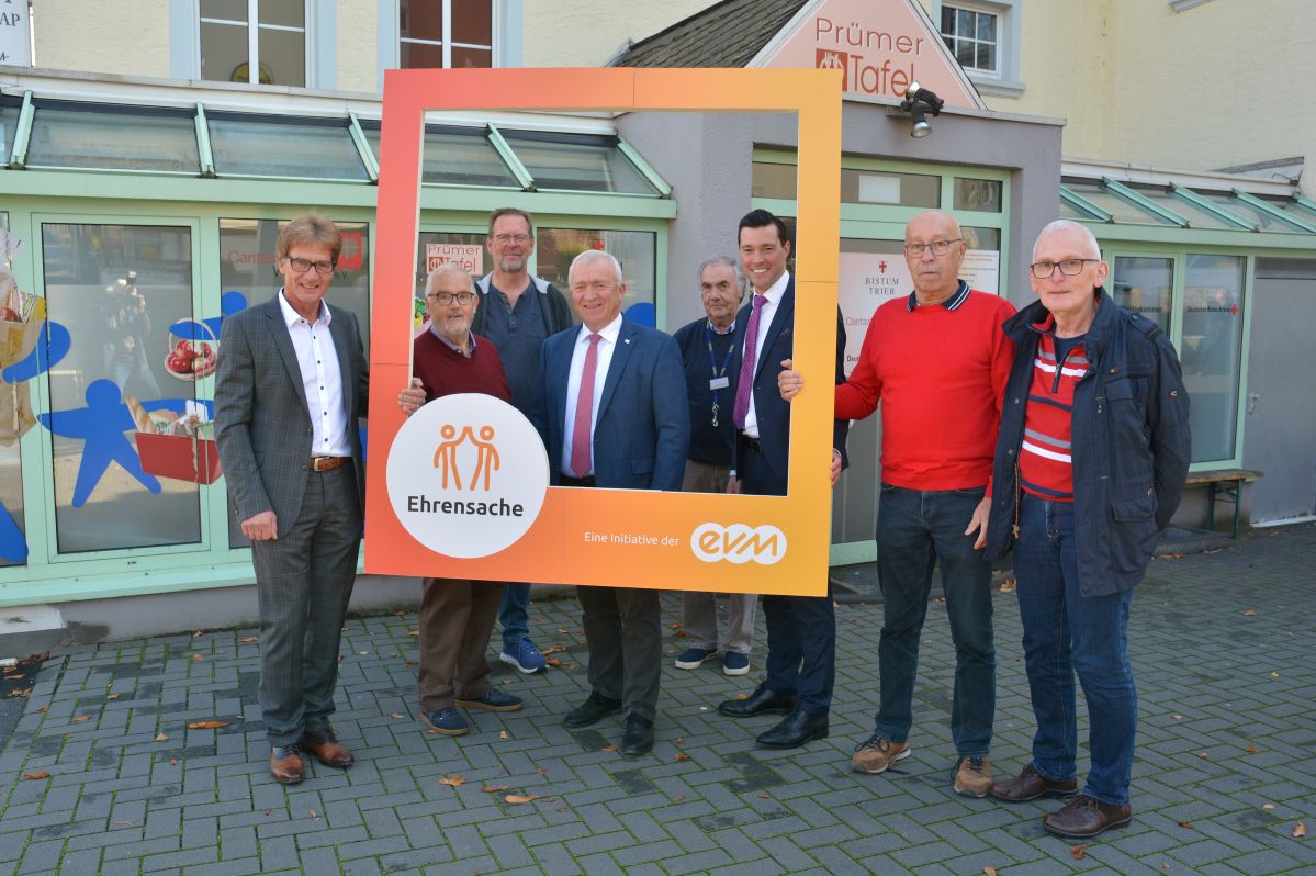 Über insgesamt 1.500 Euro aus der „evm-Ehrensache“ darf sich die Prümer Tafel freuen. Mit ihrem Spendenprogramm unterstützt die Energieversorgung Mittelrhein (evm) jedes Jahr Vereine und Institutionen aus der Region, wenn es um kulturelle, soziale und gemeinnützige Projekte geht. Vor Kurzem übergab Berthold Nick, Leiter der kommunalen Betreuung bei der evm, den Spendenbetrag gemeinsam mit dem Bürgermeister der Verbandsgemeinde, Aloysius Söhngen, an den begünstigten Verein.